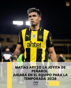 Matías Arezo jugará en Peñarol para la temporada 2026. El delantero uruguayo de 23 años llega cedido por Gremio y se suma al equipo dirigido por Diego Aguirre. Arezo ya
