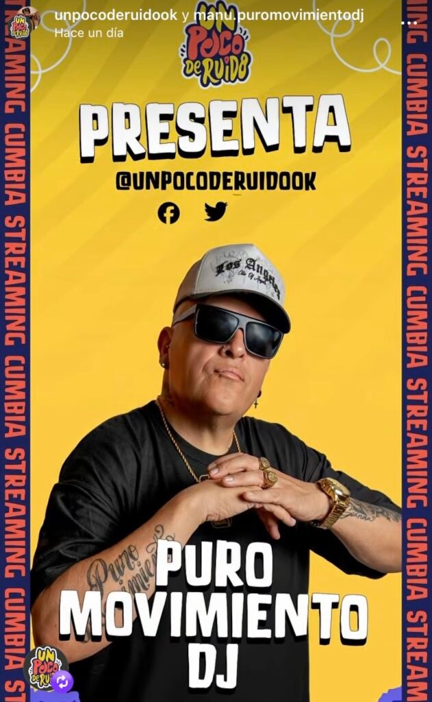 El icónico artista de cumbia argentina de los 2000, Manu y su Puro Movimiento DJ, será el protagonista de una noche especial este miércoles a las 21:00 hs, cuando debute por primera vez en el reconocido streaming “Un Poco de Ruido”, el espacio más importante de la movida tropical latinoamericana.