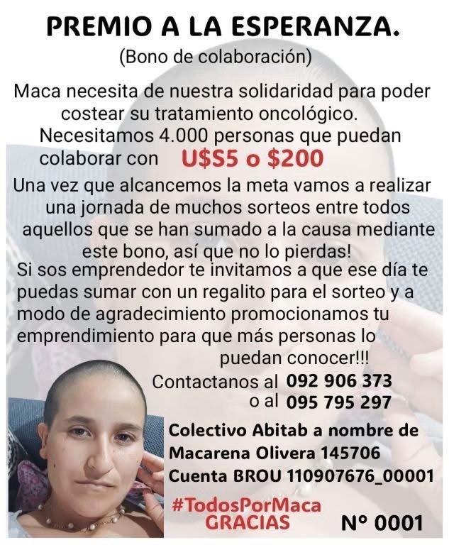 La solidaridad vuelve a ser protagonista en Salto con el lanzamiento de la campaña “Premio a la Esperanza”, destinada a apoyar a Macarena “Maca” Rendo en la cobertura de su tratamiento oncológico, que requiere recursos económicos urgentes.