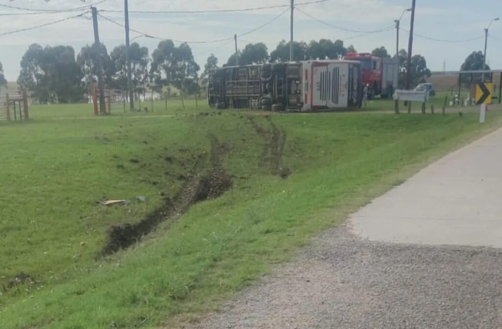 Un ómnibus de la empresa EGA con pasaje completo despistó y volcó este viernes en el kilómetro 242 de la ruta 3, en Flores, informa Policía Caminera.